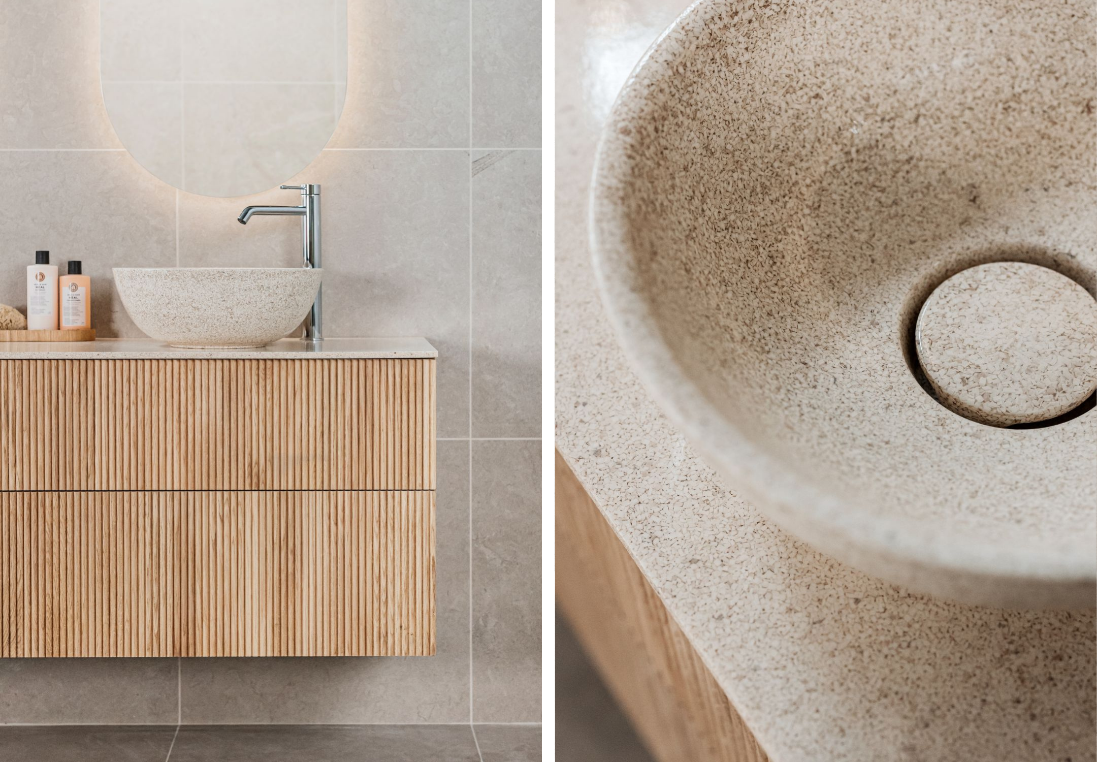 Woodio är världens första 100% vattentäta träkomposit, ett hållbart alternativ till keramik och sten. Nu lanserar vi flera nyheter: ovanpåliggande och integrerade tvättställ samt nya Woodio-knoppar, i en semimatt yta som lyfter materialets naturliga textur.