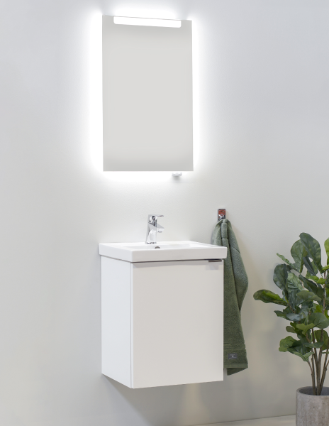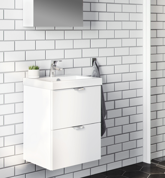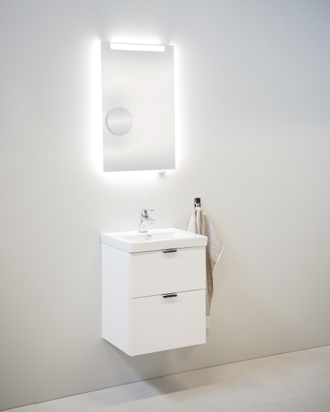 Charm kommod 450 i vitlack. Den perfekta serien för små badrum eller gästbadrum. Charm finns med låda eller lucka. Tvättställ i porslin och handtag i krom ingår. Kom ihåg att välja till matchande avloppssats! Läs mer