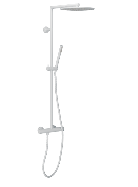 Asti Takduschblandare Vit kombinerar modern design med hög funktionalitet.Den tryckbalanserade termostaten säkerställer en konstant vattentemperatur, medan den svängbara armen förhindrar kallvattenstötar vid uppstart.Duschstången är kapbar för flexibel installation, och den dolda infästningen ger ett rent och stilrent utseende.Takduschen har en generös diameter på Ø300 mm för en behaglig duschupplevelse.Produktmåtten är B500 x H1150 x D500 mm, och den är trycktestad upp till 16 bar för pålitlig prestanda. Läs mer