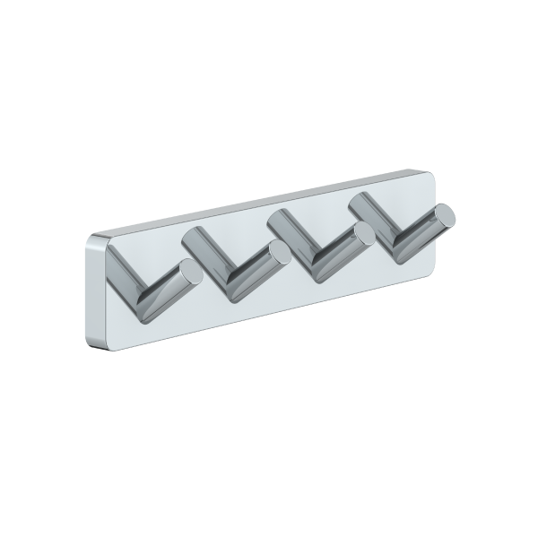 Handdukshängare Fyrkrok med plats för fyra handdukar. Finns i krom, svartkrom eller PVD-behandlad guld, som ger en repfri och motståndskraftig yta. Kan monteras skruvlöst på vägg.